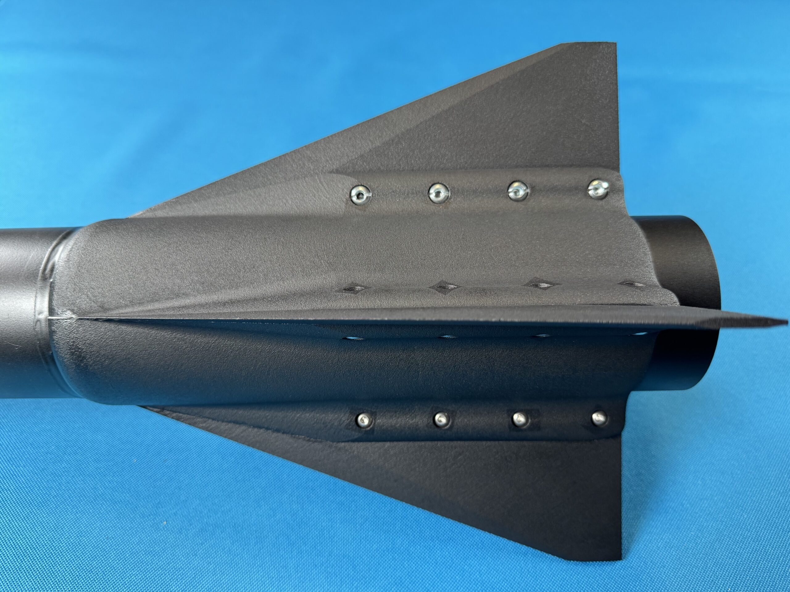 4-fin modular fin assembly intended to be used with a minimum diameter high-power rocket. The assembly can be bolted onto the airframe and then flown.