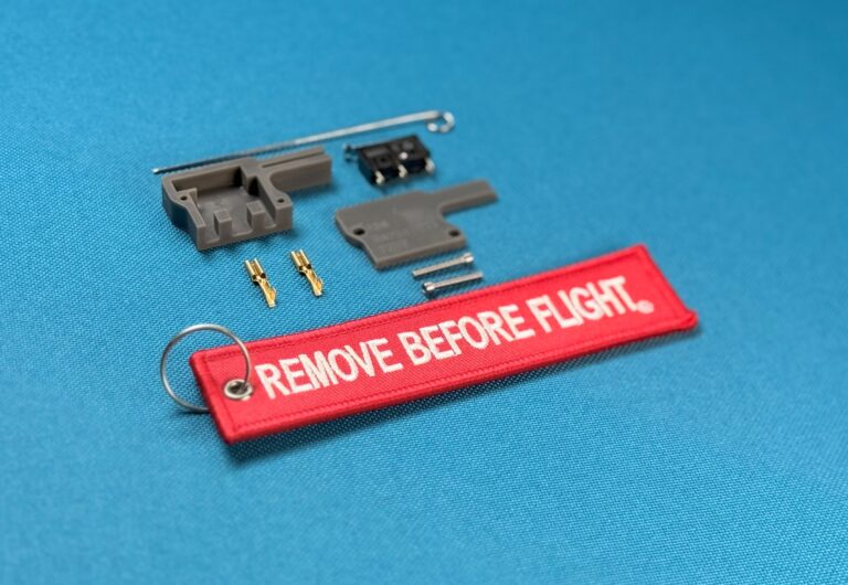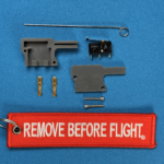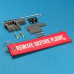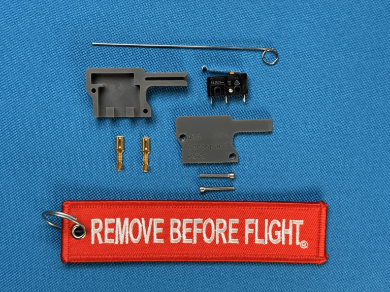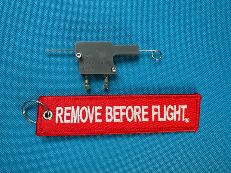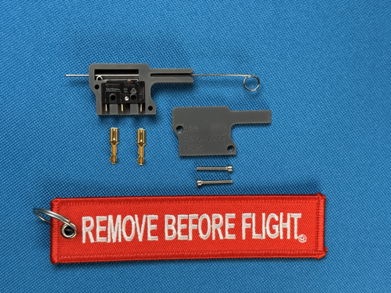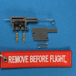 Micro Pin Switch with a “Remove Before Flight” tag. Used to arm flight a computer or any required electronics in a High-power Rocket. The ‘Remove Before Flight” tag is a clear indicator that this rocket is not armed.